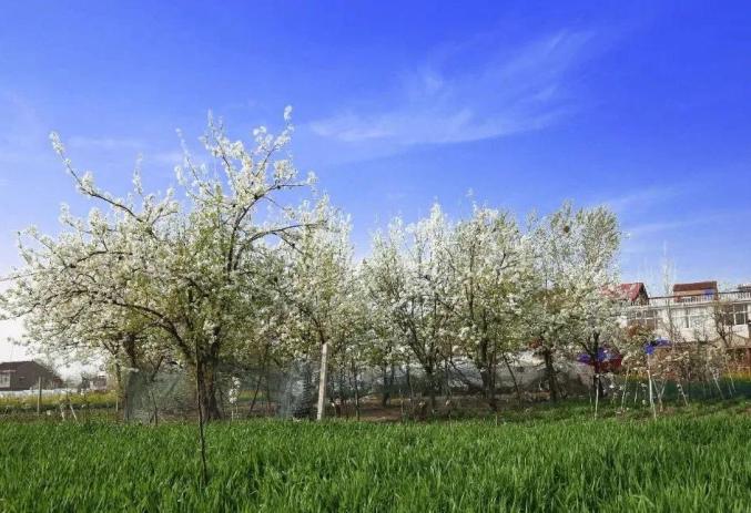 远远望去,那一簇簇雪白的梨花,如团团云絮漫卷轻飘。