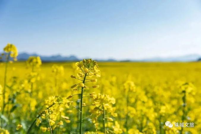 风儿一吹,一片片金黄的油菜花随风飘动,铺天盖地蔓延开来,就像唯美的油彩画作。