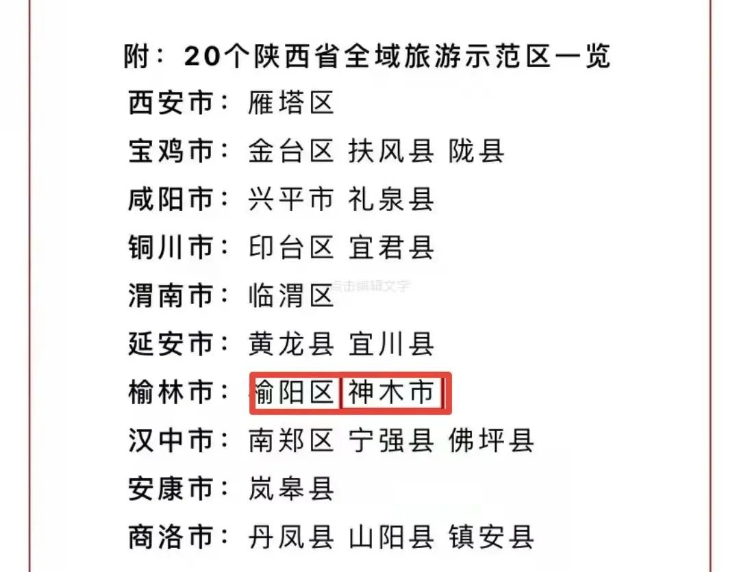 原标题:《点赞!我市榆阳、神木被评为陕西省全域旅游示范区》