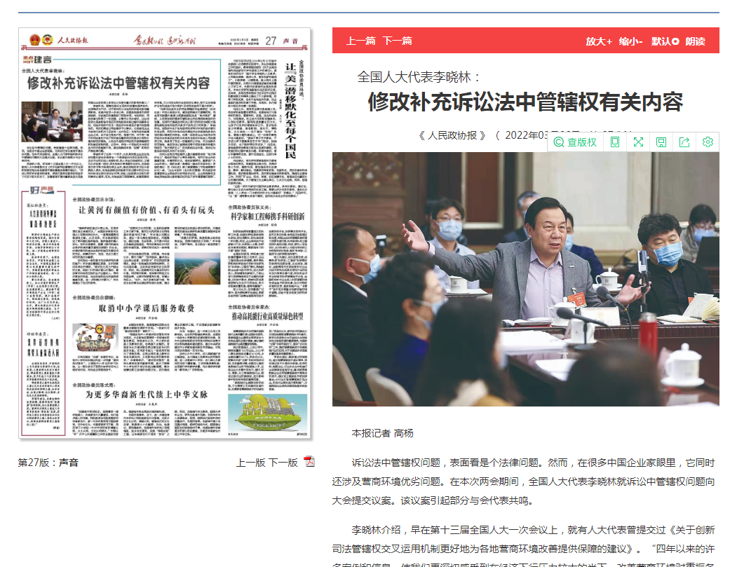 诉讼法中管辖权问题,表面看是个法律问题。然而,在很多中国企业家眼里,它同时还涉及营商环境优劣问题。在本次两会期间,全国人大代表李晓林就诉讼中管辖权问题向大会提交议案。该议案引起部分与会代表共鸣。
