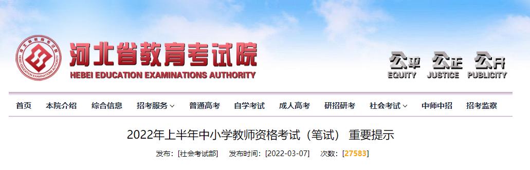 河北省教育考试院最新发布2022年上半年中小学教师资格考试(笔试) 重要提示↓↓↓