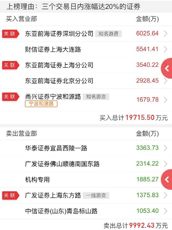 此外,因三个交易日内涨幅达20%,中国医药登上龙虎榜,“东亚三剑客”1.25亿抱团中国医药。数据显示,近三个交易日前海证券深圳、上海、北京分公司累计合计买入1.25亿元,一机构卖出1885万元。
