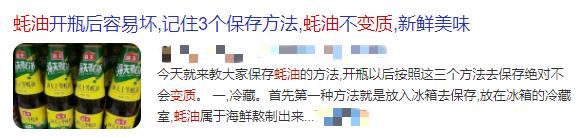 原标题:《蚝油和这些调味品都该放冰箱,否则会有致癌风险?》