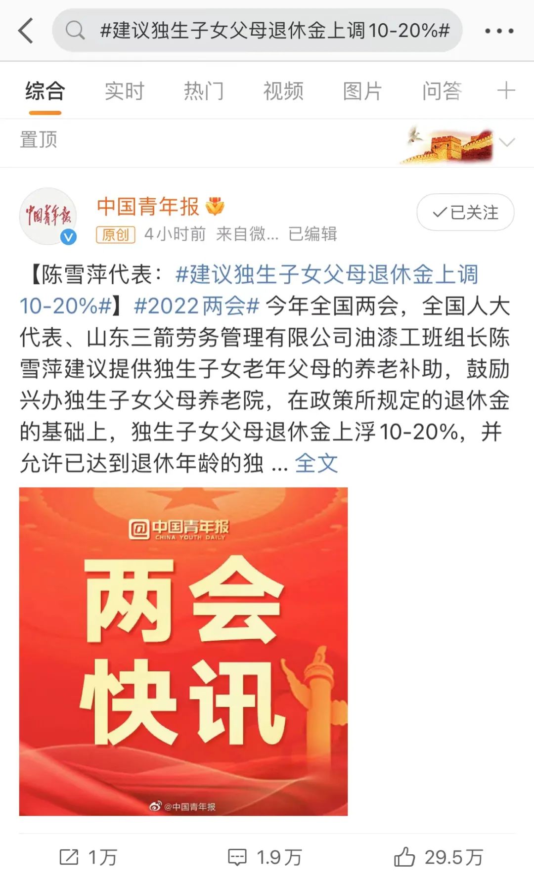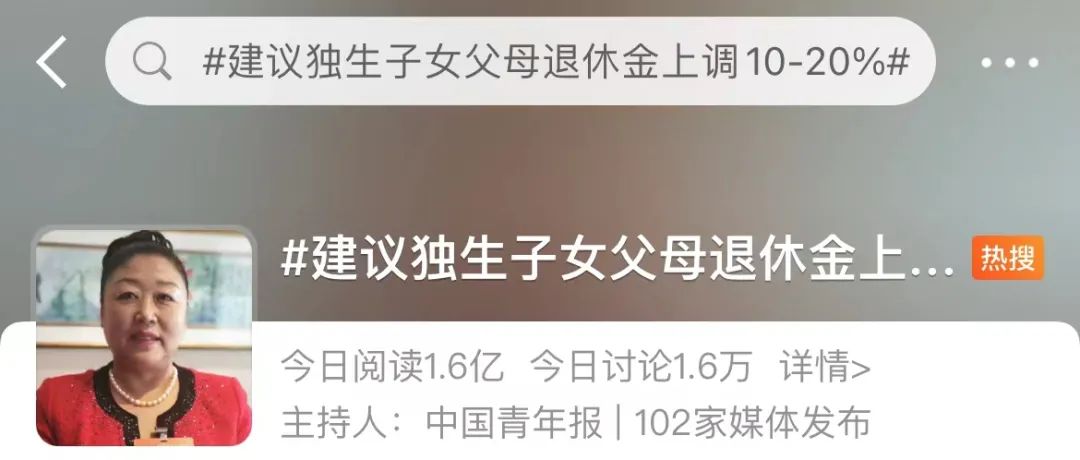 原标题:《热搜第一!上调独生子女父母养老金?代表最新建议......》