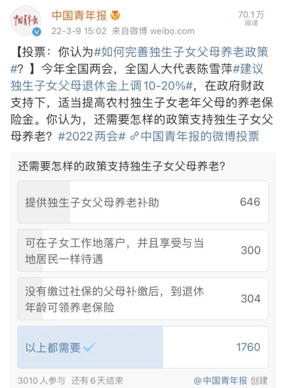 3月9日,话题#建议独生子女父母退休金上调10-20%#持续占据热搜第一,引发关注。