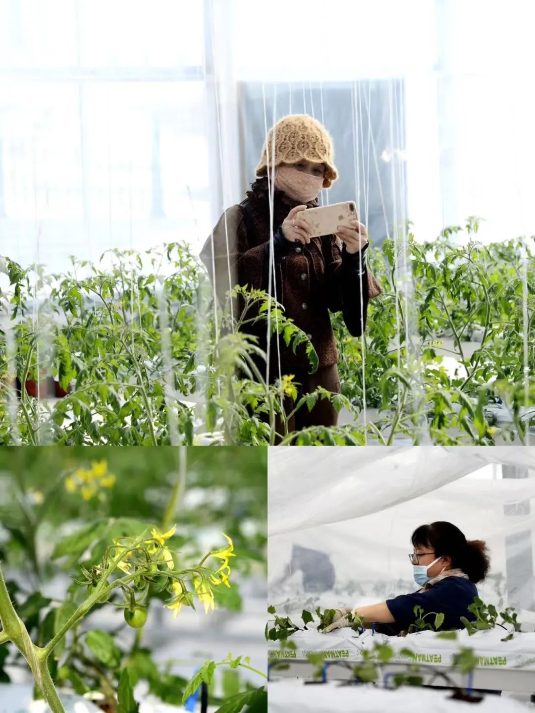 在一号温室,西红柿已经开花结果。有些游客慕名而来参观拍照。李大姐今天特地带外地回来探亲的儿子来参观。她为家乡能有这样高科技农业产业园区感到自豪。