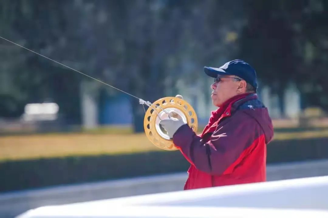 他们迎着风,不时抬头看看天空,像游刃有余的舵手,指引着济南城上空放飞的“一叶小舟”,飞得更高更远。
