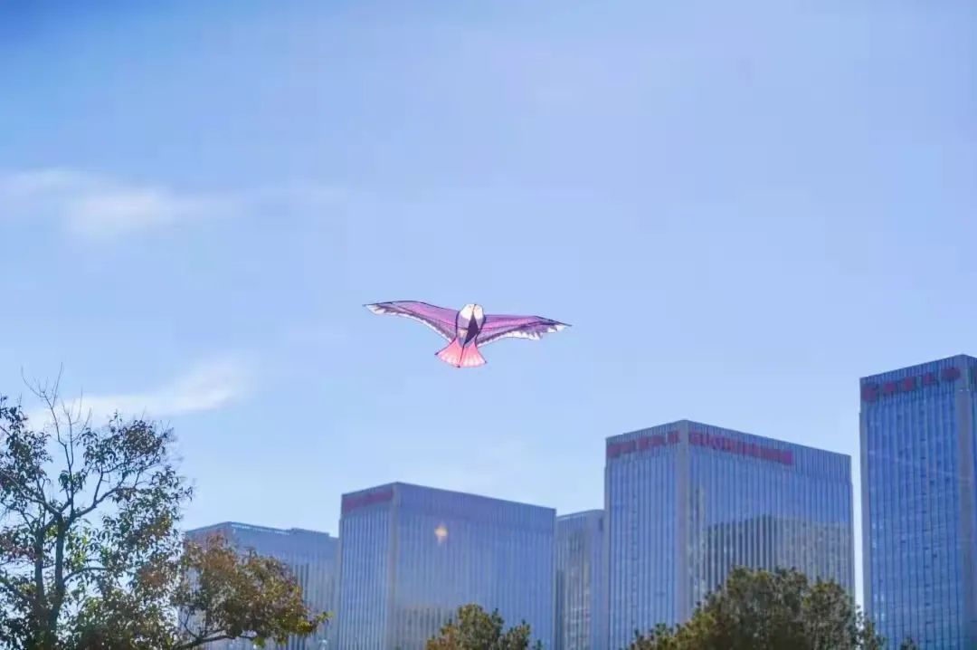 白天,它是风筝们自由翱翔的快乐国度,晚上,它是光影交织的夜色交响曲,与周围片区林立的楼宇相映成趣,活力四射。