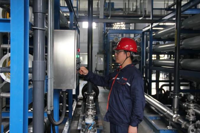 图为久吾高科的工程师在造纸废水零排放项目现场,对反渗透工艺系统进行自动化操作,开展日常维护工作