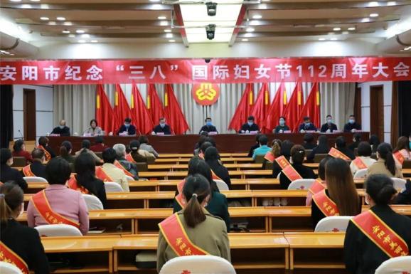 3月8日,安阳市妇联举行纪念“三八”国际妇女节112周年大会。市委副书记、市纪委书记、市监委主任黄明海出席会议并讲话。会上为获得全国维护妇女儿童权益先进个人(集体)、全国“最美家庭”、河南省家风家教示范基地、河南省示范“四组一队”、河南省“最美家庭”、安阳市三八红旗手(集体)等颁发了奖牌和荣誉证书。各县(市、区)妇联主席,受表扬的先进个人(集体)代表等近百人参加会议。
