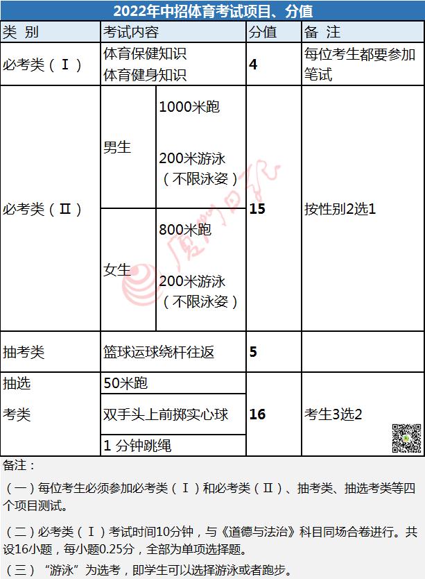 原标题:《快讯!2022年厦门体育中考方案和评分标准出炉!这几类人可免考!》