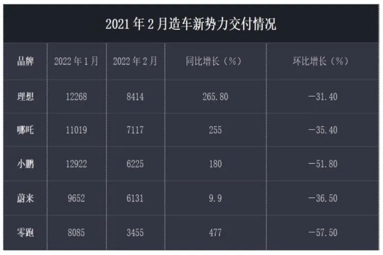 在造车新势力2月的销量比拼中,格局再度生变,理想登顶、小鹏腰斩、蔚来滑至第四,哪吒突出重围。