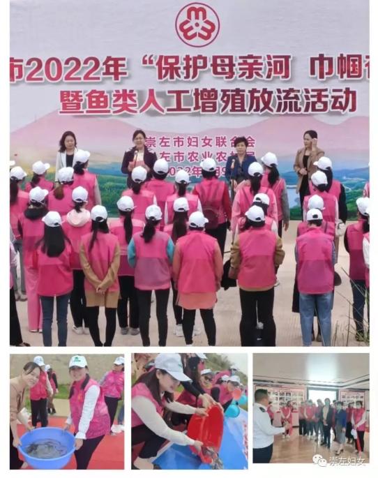 崇左市妇联联合崇左市农业农村局在左江丽江广场河段举办崇左市2022年“保护母亲河 巾帼在行动”暨鱼类人类增殖放流活动,近100多名巾帼志愿都参与,共放生草鱼、鳙鱼等鱼苗90多万尾。