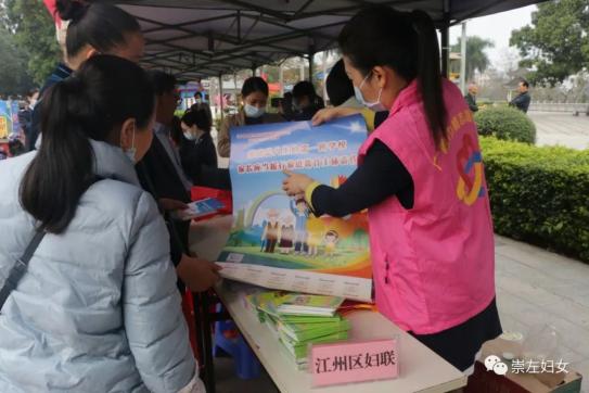 江州区妇联组织公安局、检察院、法院、政法委等19个单位开展江州区2022年“三八”维权周暨《家庭教育促进法》宣传咨询服务活动。对在抗疫一线表现优秀的22名卫生系统女性工作者、20名女警务人员开展“三八”节慰问活动。联合林业局组织江南街道、太平街道、石景林街道共计25名巾帼志愿者到先锋水泥厂附近开展喜迎“妇女节”,共植巾帼树活动。