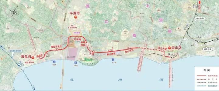据了解,该条市域铁路是国家发改委明确的长三角区域城际、市域(郊)铁路建设重点项目。铁路自金山铁路金山卫站引出,向西进入浙江,途经平湖市、嘉兴港区,终至海盐县,最高设计时速160公里。新建线路长度约52公里,其中浙江段线路长度41.626公里。