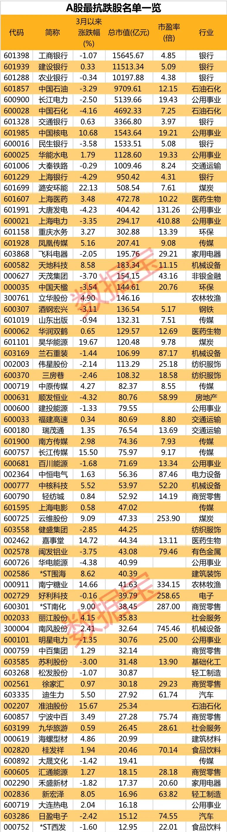 71只抗跌A股出炉
