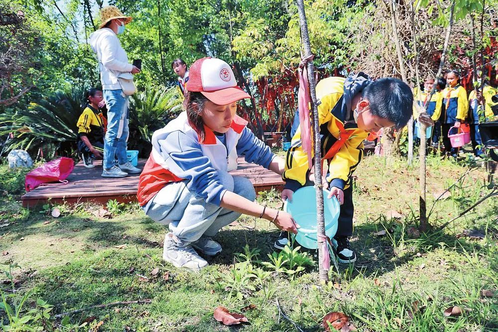 3月10日,检察官与小学师生们来到墨江哈尼族自治县未成年人公益林基地开展义务植树。沈浩 吴江梅 摄