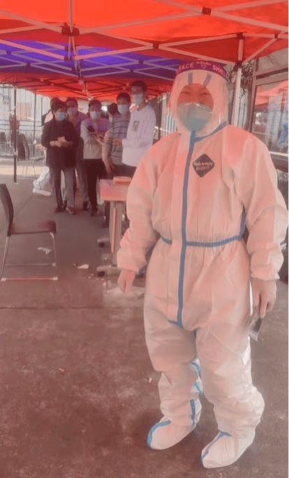 整个顾家宅社区900多个门栋,五六千号人,全员核酸的工作量并不小。“第一天干到凌晨3:30,第二天晚上9点多。”张跃华说,核酸检测的医务人员都没有喊辛苦,他怎么好意思休息。