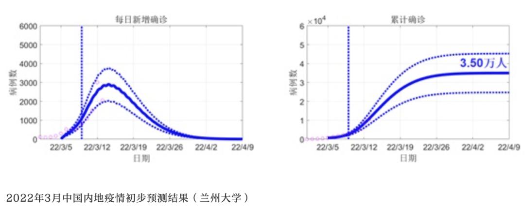 3月14日,兰州大学新冠肺炎疫情全球预测系统对我国内地本轮疫情作出了预测。初步预测结果显示,内地本轮疫情预计将于2022年4月初得到控制。