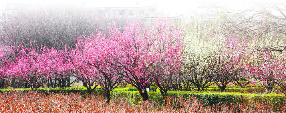 据园林工作人员介绍,我市根据气候条件,在全市公园、主要景观道路、口袋公园等地,选择梅花、樱花、杏树、桃树、玉兰、海棠、梨树等树种作为园林造景常用的植物材料,其春可赏花、秋可观果,且管理粗放,对环境适应性强。