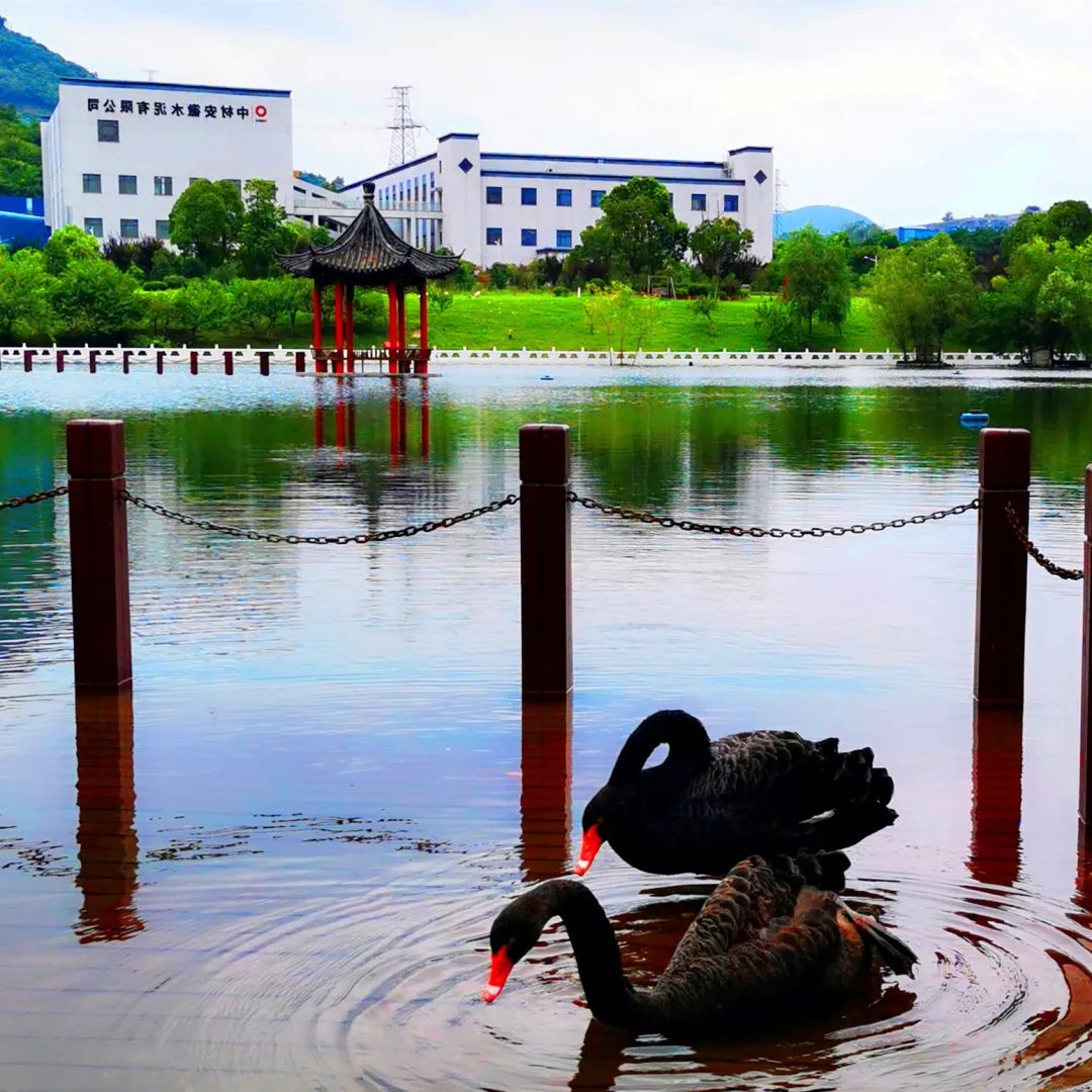 花园厂域赛瑶庭,山净水清毓秀灵。如今的中材安徽厂区芳草如茵、树木葱郁,孔雀绽放五彩羽衣,雍容俊俏的天鹅在碧波中游荡。一座花园工厂画卷正徐徐展开。
