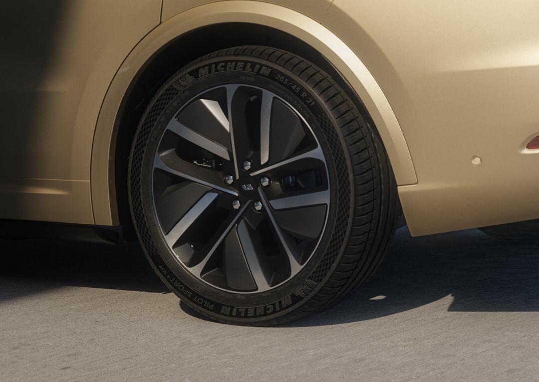 尺寸方面,L9 的车轮尺寸达到了 265/45 R21,我们猜测理想全系车型只有这一个尺寸的车轮,但是会有多个样式的轮毂。