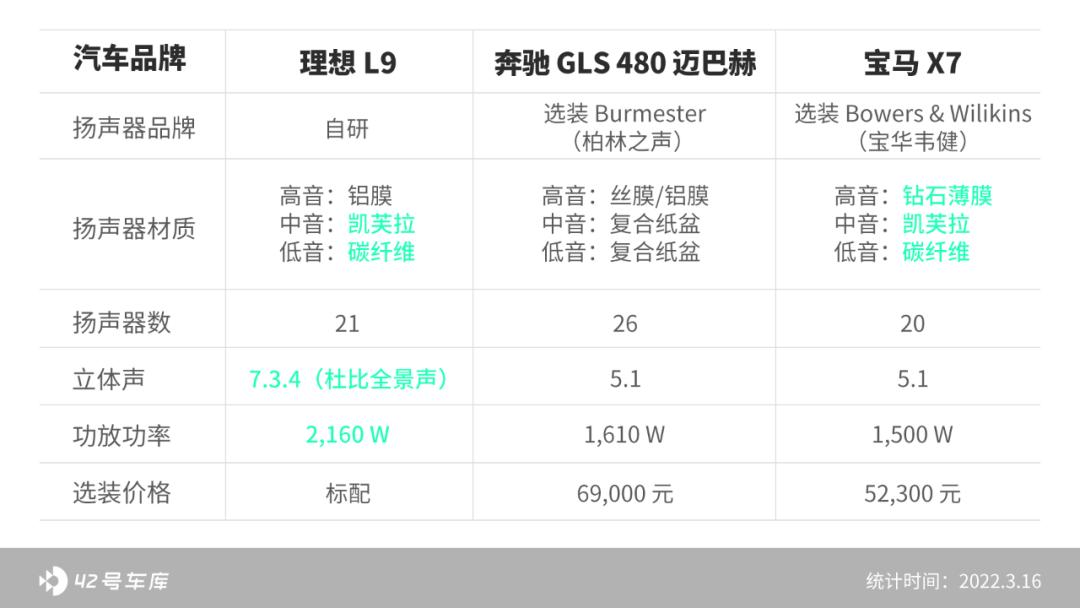 我们可以看到蔚来 ET7 已经把听觉体验拉到了一个全新的高度,从目前的信息来看,理想 L9 也紧随其后。