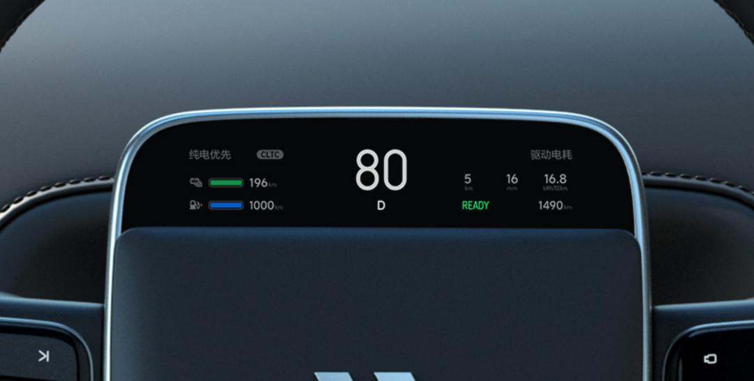 这块屏幕采用 Mini-LED 材质,支持多点触控,可以显示所有驾驶相关的有效信息(包含导航和智能驾驶)。