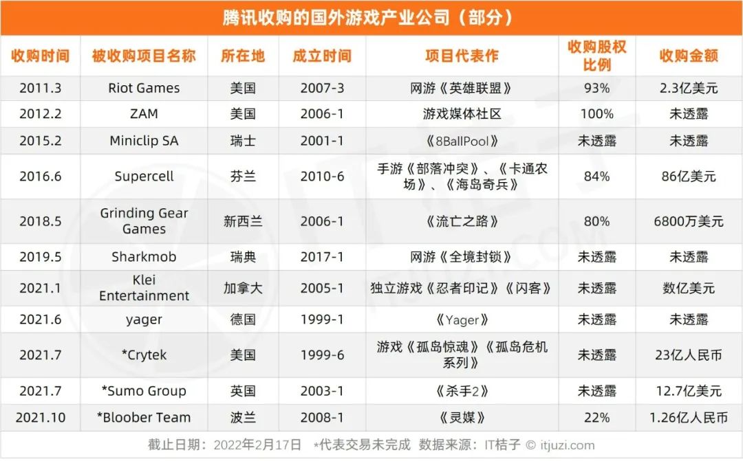 腾讯海外投资关键词:重游戏/文娱内容;开放;虚拟经济
