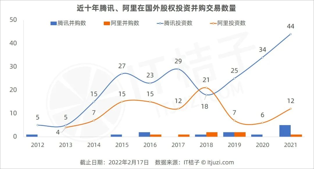 在此,IT 桔子将解读腾讯、阿里这些年在海外的投资并购布局情况,及他们各自的投资策略。