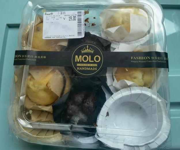 3月10日下午5时许,吴女士在西湖永辉超市购买了一份生产日期为“3月10日”、售价为19.8元的小蛋糕。吴女士回家打开包装后发现,盒内装有9块糕点,有两块已长出了一层白毛,明显发霉变质。