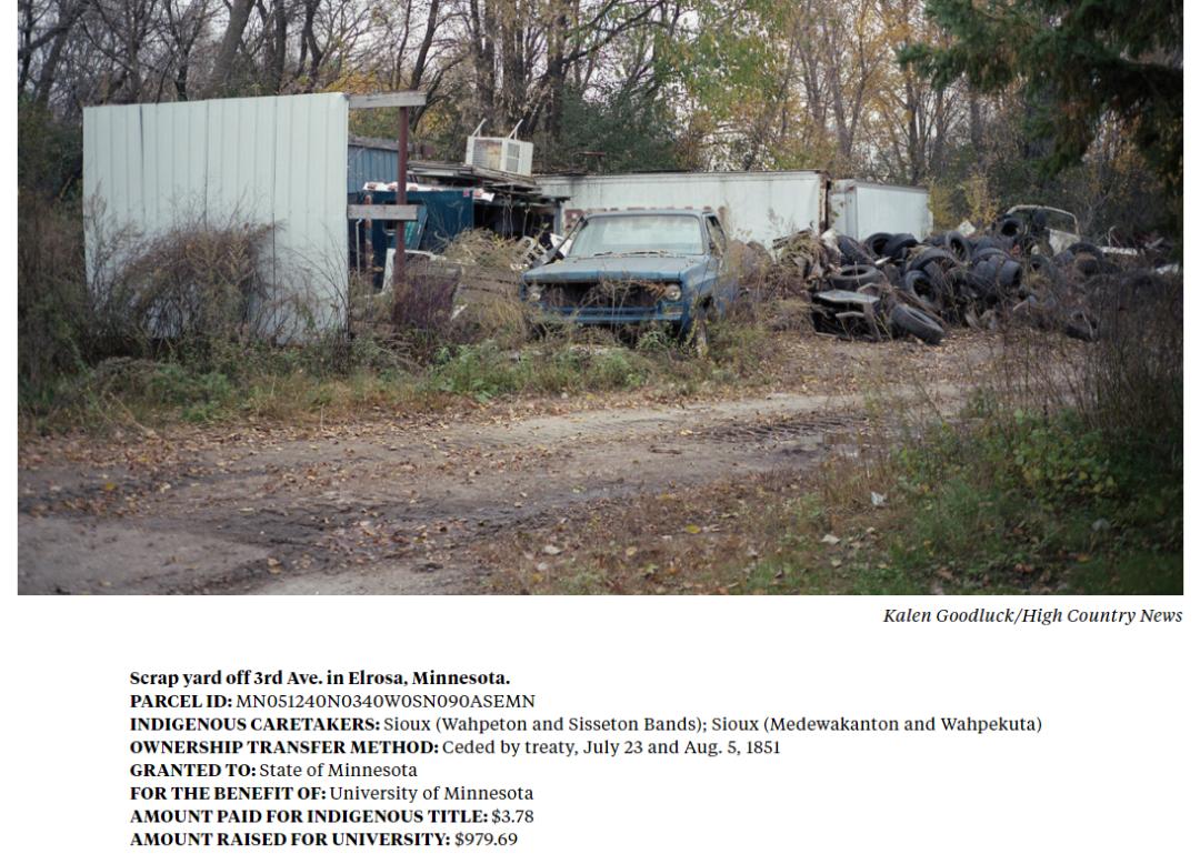 本作品通过呈现近 1100 万英亩的原住民土地,逾 160 项暴力支持的条约和土地征用,约 250 个部落、团体和社区,以及 52 所大学的真实情况,揭示了被征用的原住民土地如何为赠地大学系统提供资金,以及有多少机构借赠地之便继续盈利。