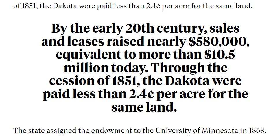 到20世纪初,这一计划为52所赠地大学分配了1070万英亩的原住民土地,筹集了价值2280万美元的捐赠款(包括本金和未出售土地所有权)。