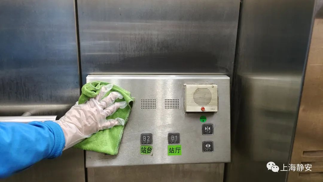 对于所有公共区域,也就是乘客能够接触到的区域,如售票机、闸机、服务台、电梯楼梯、站台座椅、无障碍电梯、地面等,还有工作人员待的站房,都会每天消毒,白天一遍、晚上一遍。