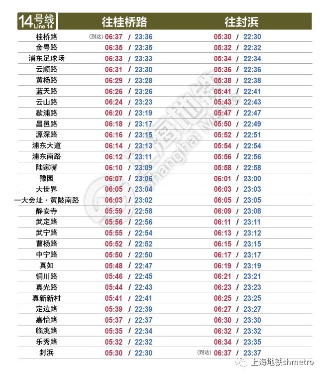 原标题:《运营时间有变化!上海地铁全网最新首末班车时刻表来了》