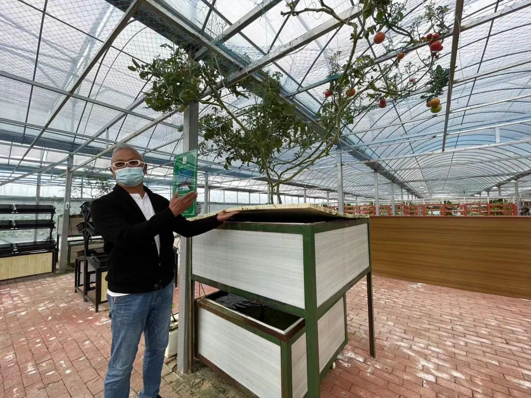 在金泽镇的七叶鸿庐农业智能温室大棚内,举目望去,一株两米多高无土栽培的番茄枝叶生长茂盛,一串串西红柿挂在枝头,不但漂亮高产,一口咬下去皮薄味甜,口感很好。工作人员告诉记者,这种西红柿现在只能在温室里栽培,随着植株的长大,需要用不锈钢支架支起来,通过多杆整枝的修剪技术,使其形状似树,未来单株冠幅可达14米以上,树冠覆盖面积超150平方米,单株累计结果可达3-5千斤。