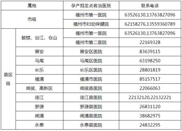 福州疫情期间孕产妇定点救治医院有哪些?