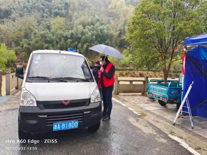 临安区湍口镇三联村党总支书记、村委会主任方刚,是一名80后新乡贤,第一时间安排人员、布置卡点、搬运物资,带领村两委班子、党员志愿者、网格员坚守在防疫一线。三联村是湍口镇人口最多的行政村,进村的路口多且分布零散,方刚与村干部一起商量对策、增设卡点和值班人员。尽管这几天风雨交加,由简易帐篷搭建成的临时卡点里也显得格外寒冷,但方刚与值守人员依旧在岗在位、共担风雨。