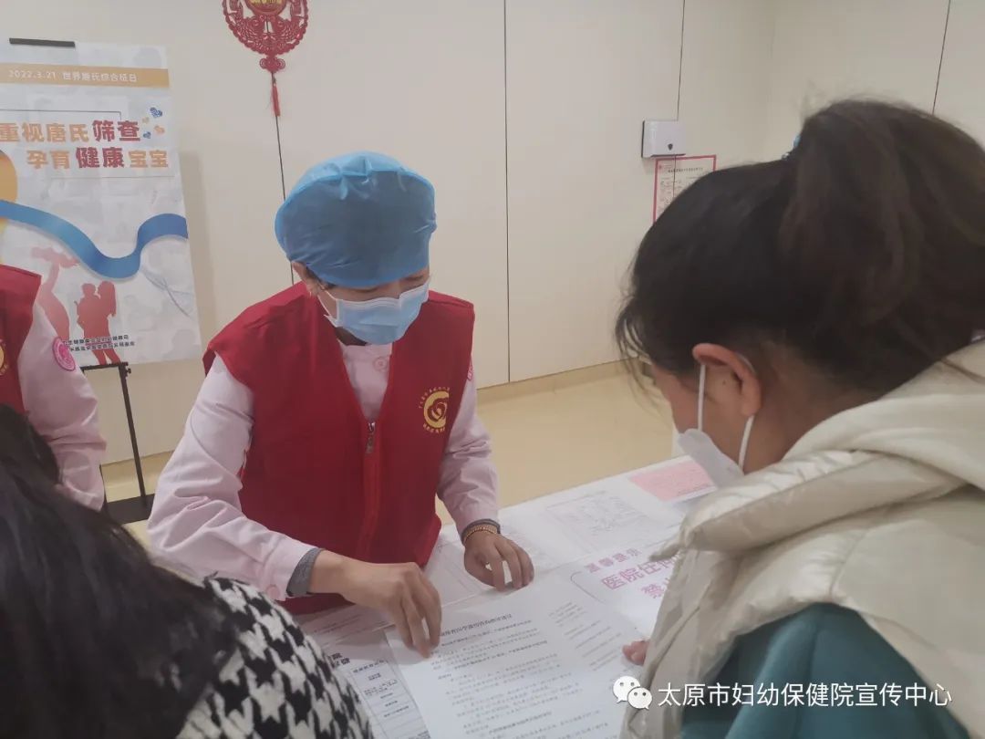3月21日,太原市妇幼保健院南内环院区、长风院区同时开展“世界唐氏综合征日”主题活动,产科门诊的出诊医生给孕妈妈详细讲解了唐氏筛查的重要性,告诉孕妈妈唐氏筛查可以有效计算出先天缺陷胎儿的危险系数,它是通过抽取孕妇血清,检查母体血清中甲型胎儿蛋白,同时配合一些其他的检查项目,可以及时发现胎儿是否有发育缺陷的情况。