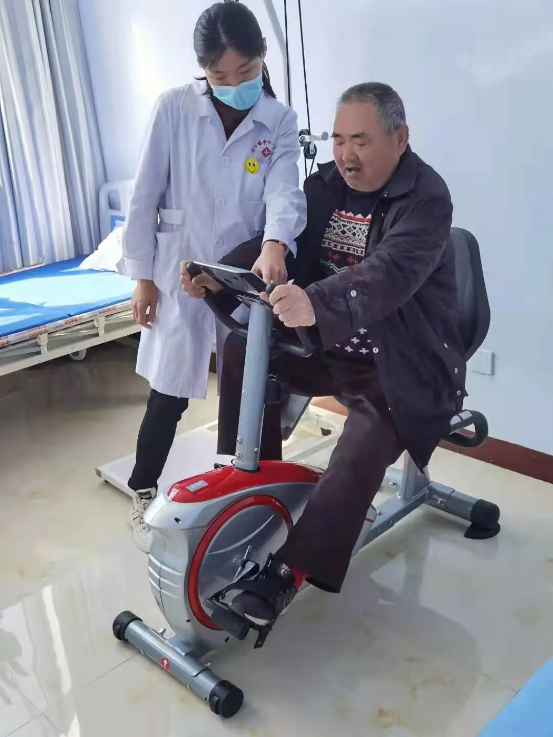 康复站内配备了功率自行车、床边踏车、肺功能测试仪、膈肌起搏治疗仪、除颤仪等设备。可以对患者进行个体化、全面有效的精确评估肺功能情况,采取健康教育、康复训练、营养和心理指导等综合措施,为患者提供全面、系统的康复医学服务。在服务模式上,针对每一位尘肺病患者制定个性化的康复方案,为患者提供长期的康复管理服务。目前,龙口镇已有238名尘肺病患者完成建档 ,自康复站投入使用以来,共收治尘肺人群康复168人次,通过呼吸功能锻炼、四肢联动锻炼、振动排痰、氧疗等综合康复疗法,有效改善了尘肺病患者咳嗽咳痰、胸闷气急、呼吸困难等症状,切实提高了患者的生活质量。