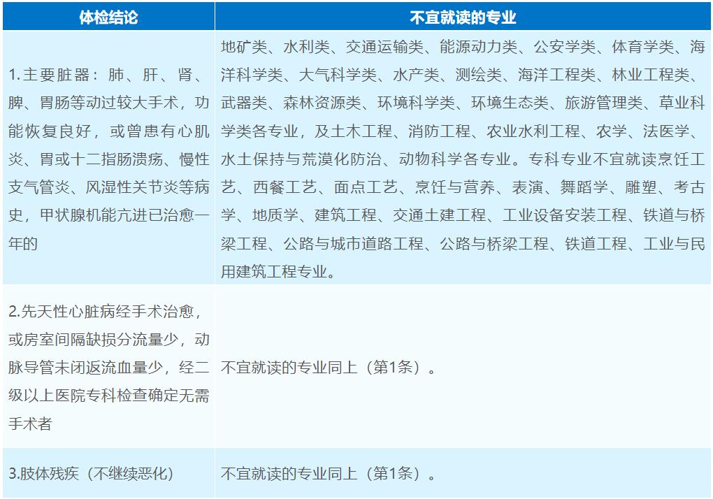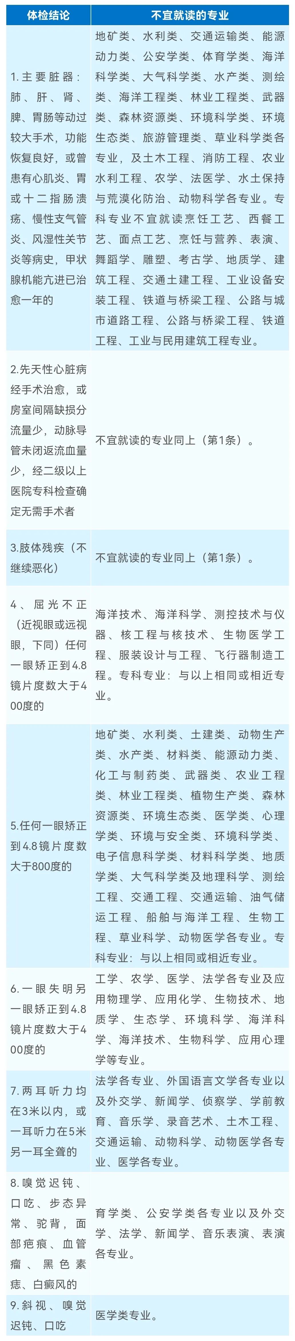 也就是说,这类考生不能报考一些受到限制的专业,否则即使成绩再高,高校也可以不录取。对应《指导意见》中第二部分所列条款: