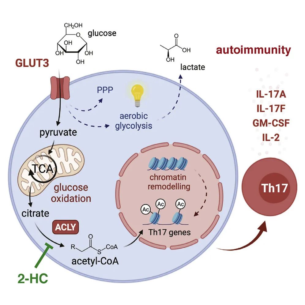 研究人员表示,这些新发现为自身免疫疾病靶向治疗的发展铺平了道路。例如,通过膳食补充剂羟基柠檬酸盐(用于治疗肥胖)阻断依赖GLUT3的乙酰辅酶A合成,可以减轻Th17细胞的致病功能,减少炎症病理过程。T细胞“代谢重编程”为治疗自身免疫性疾病提供了新的可能性,而不会削弱保护性免疫细胞的功能。