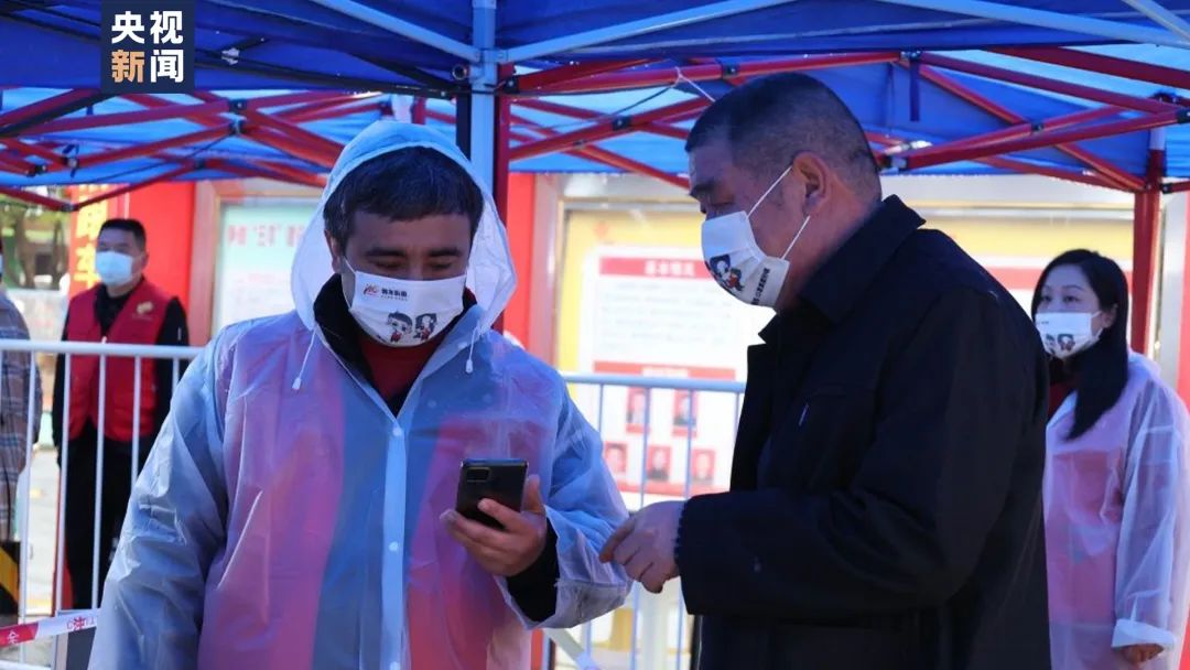 “又来做志愿者啊”,队伍中一位居民出示自己的健康码,笑着拍了拍列提普·图热的背。“嗯”,列提普·图热回应道,又忙着提醒下一组居民做好准备。