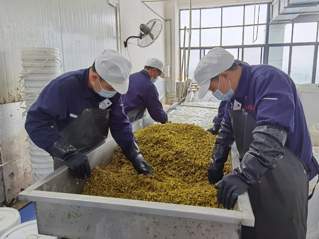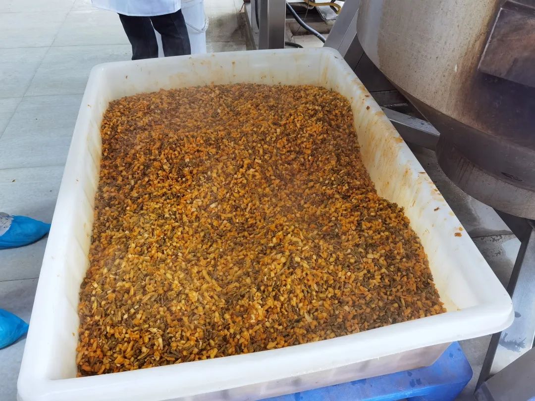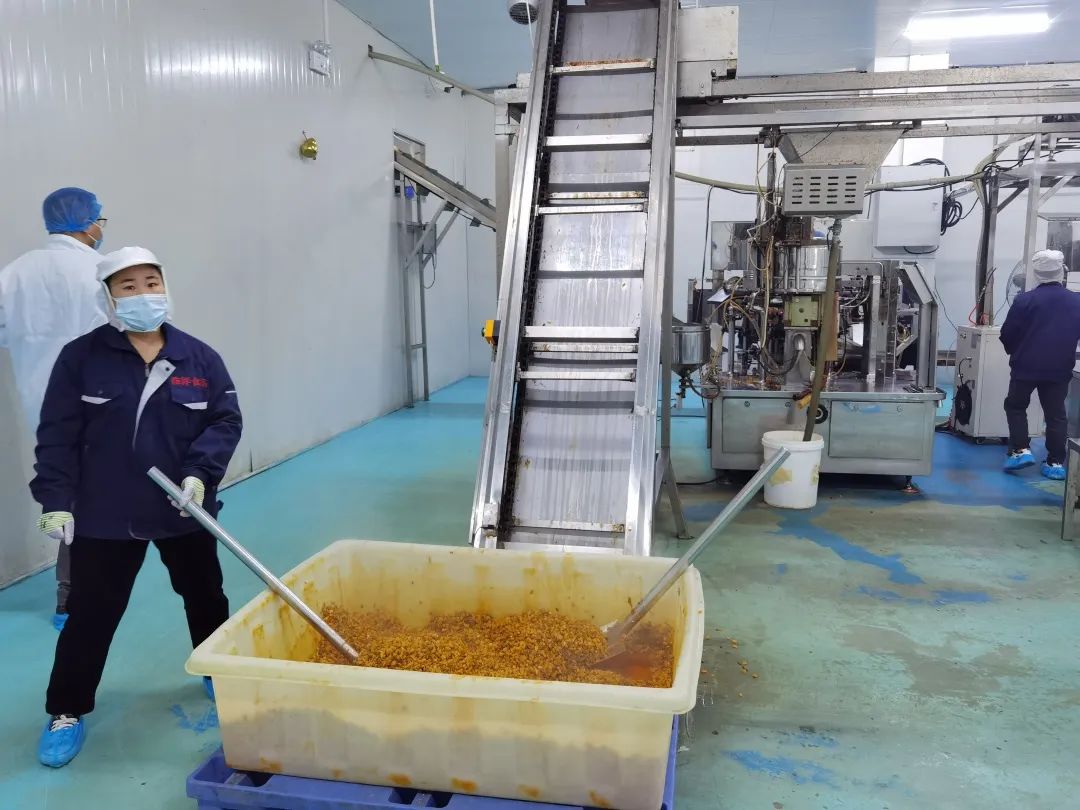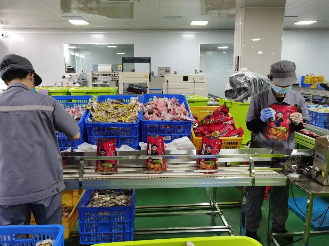 腌制成功的酸豆角紧接着会被运往螺蛳粉生产厂。在广西口水歌食品科技有限公司的车间里,记者看到,腌制好的酸豆角,在这里经过再次清洗、沸水煮熟、翻炒后,再装入袋中。厂长罗胜权:“我们长期战略合作的都是有政府资质的供应商。包括我们的台账,都是按照国家标准做的。这是为了要保证我们自己的品牌。也为了让老百姓吃到真正的好的、合格的产品。”