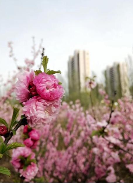 因其叶片像榆树,花朵酷似梅花而得名。榆叶梅初开时为深红色,随着花期慢慢变成粉红色,最后为粉白色。