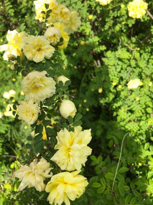 进入六月,连翘、榆叶梅、杏花都已谢了,黄刺玫又绽开了笑脸,金黄的花朵在绿叶映衬下炫目多姿。