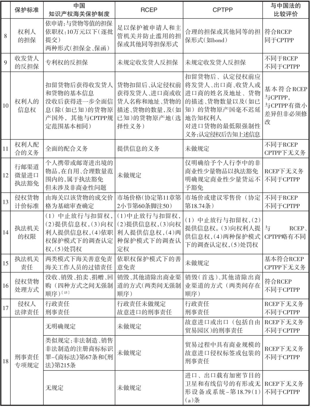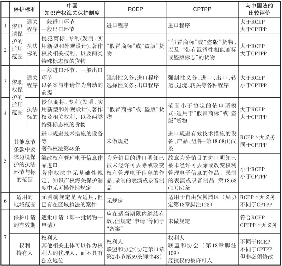 一、我国国内法与RCEP、CPTPP知识产权海关保护条款的比较与分析