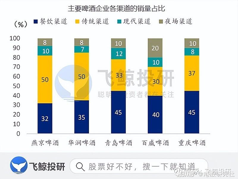 最重要的原因,可能是因为华润啤酒受疫情影响相对较小。因为它的销售渠道以传统渠道和餐饮渠道为主。根据飞鲸投研数据,华润啤酒50%的渠道为传统渠道,包括商超、名烟名酒店、便利店、冷饮摊等。