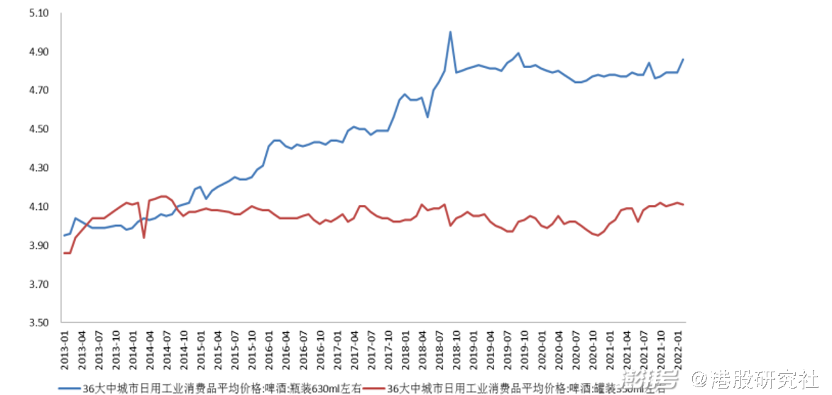 成本上涨使华润啤酒等啤酒厂商利润空间受到压缩,可能影响22年的业绩。如果通过提价将成本转嫁给消费者,是否会影响销量尚未可知。