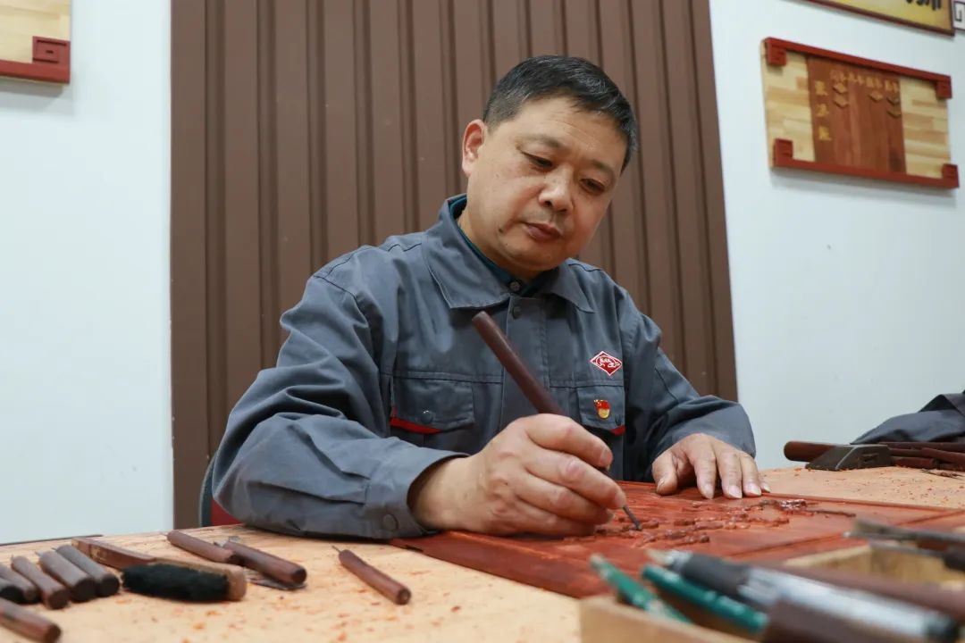 刘更生在雕刻花板